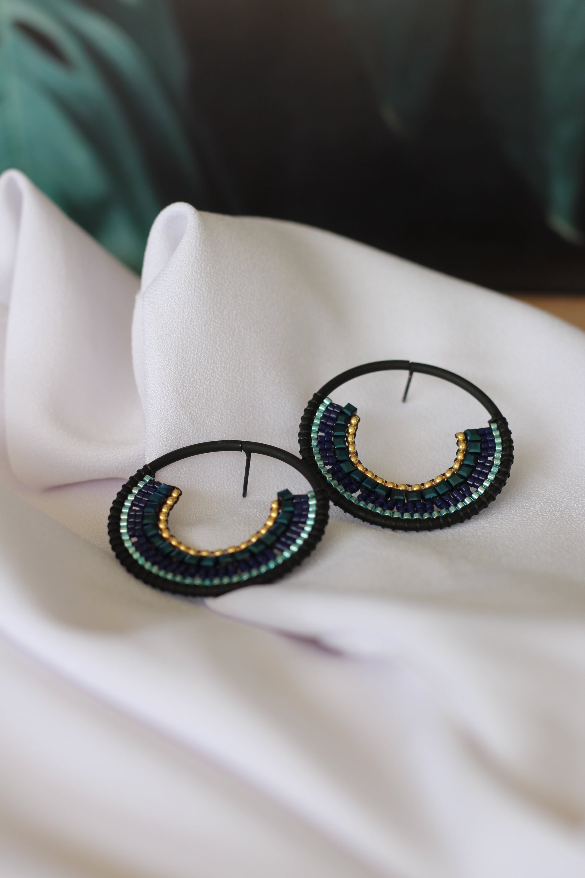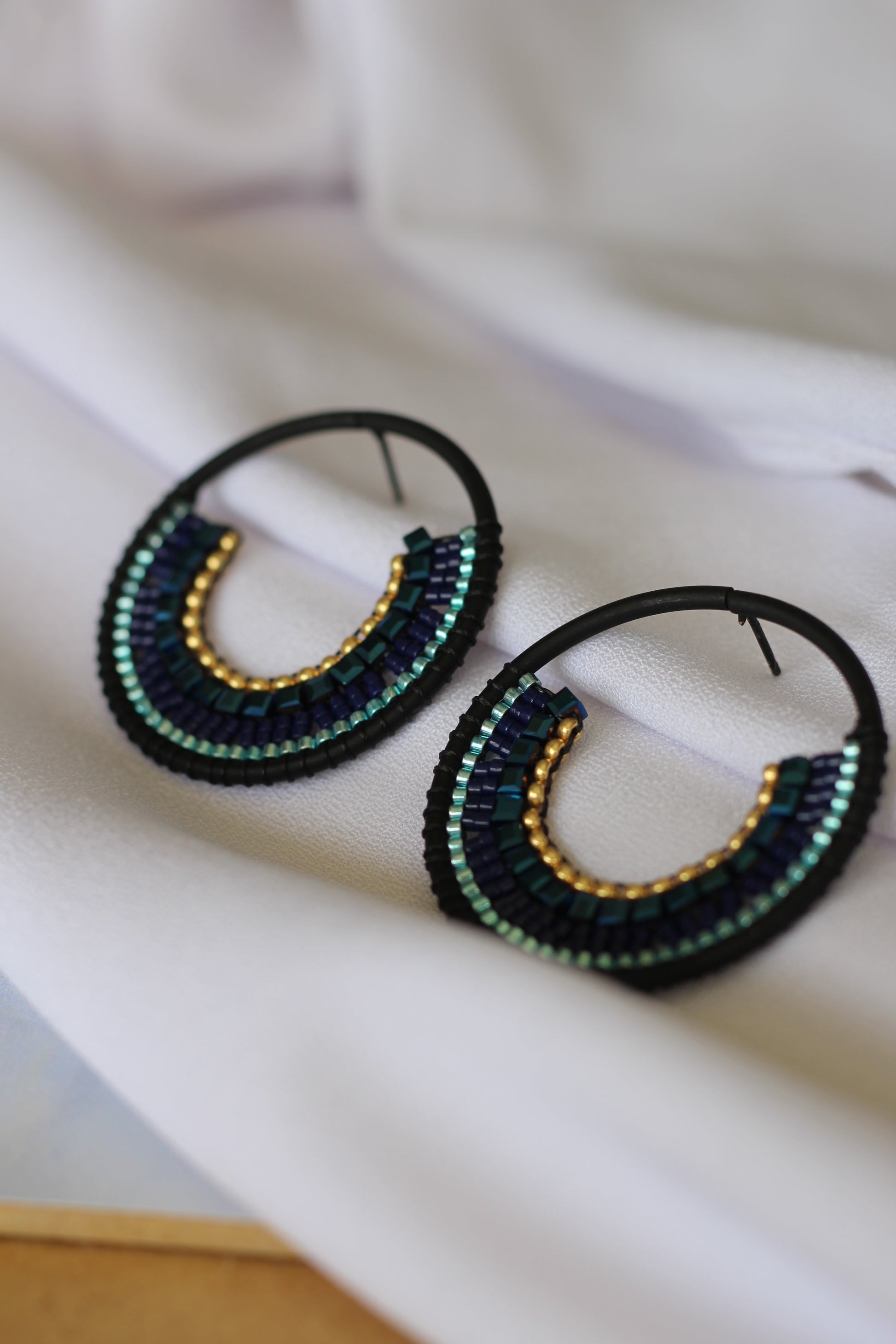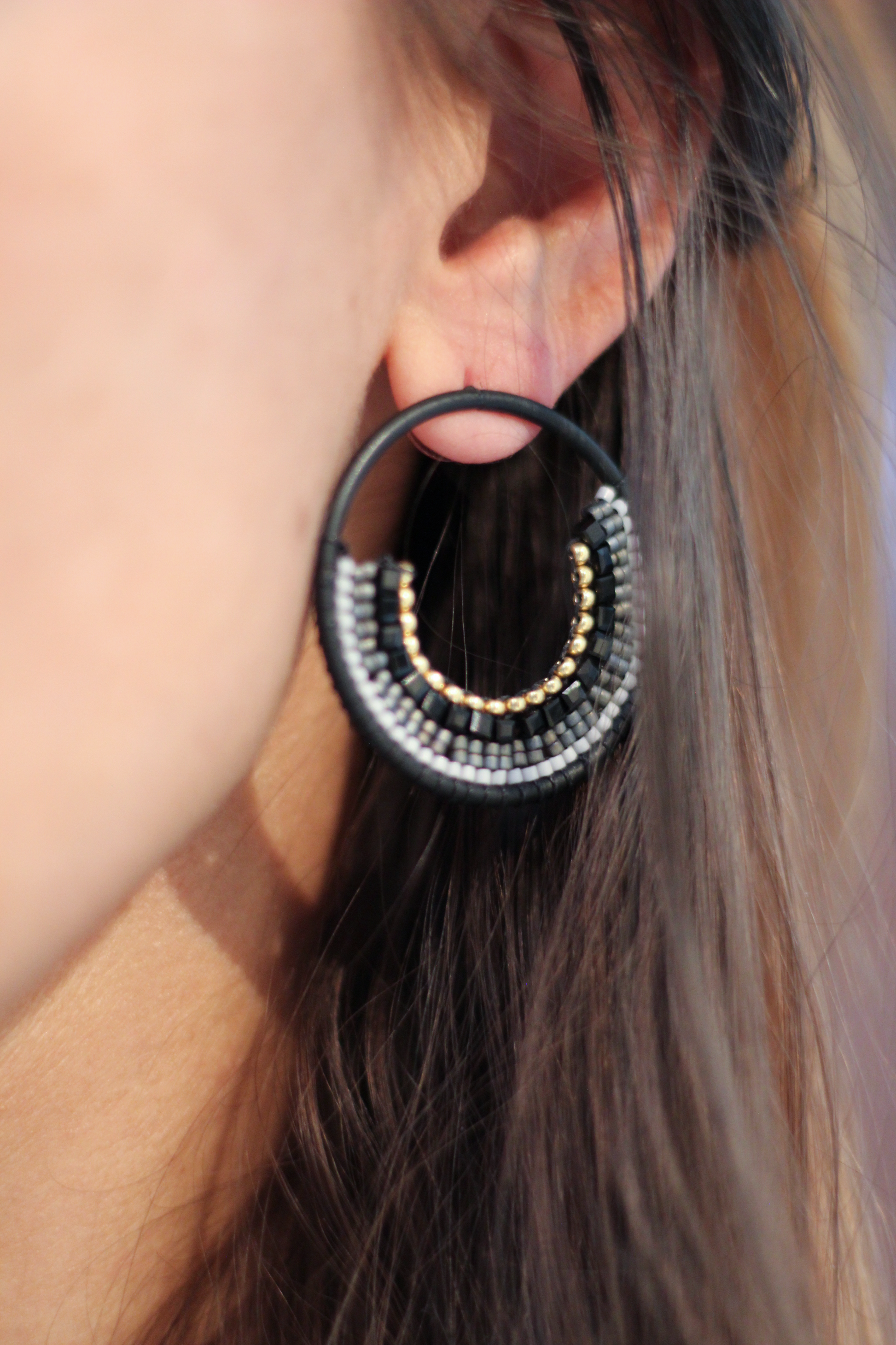 Zarcillo topitos con aro metálico de acabado negro mate. Piezas exclusivas.