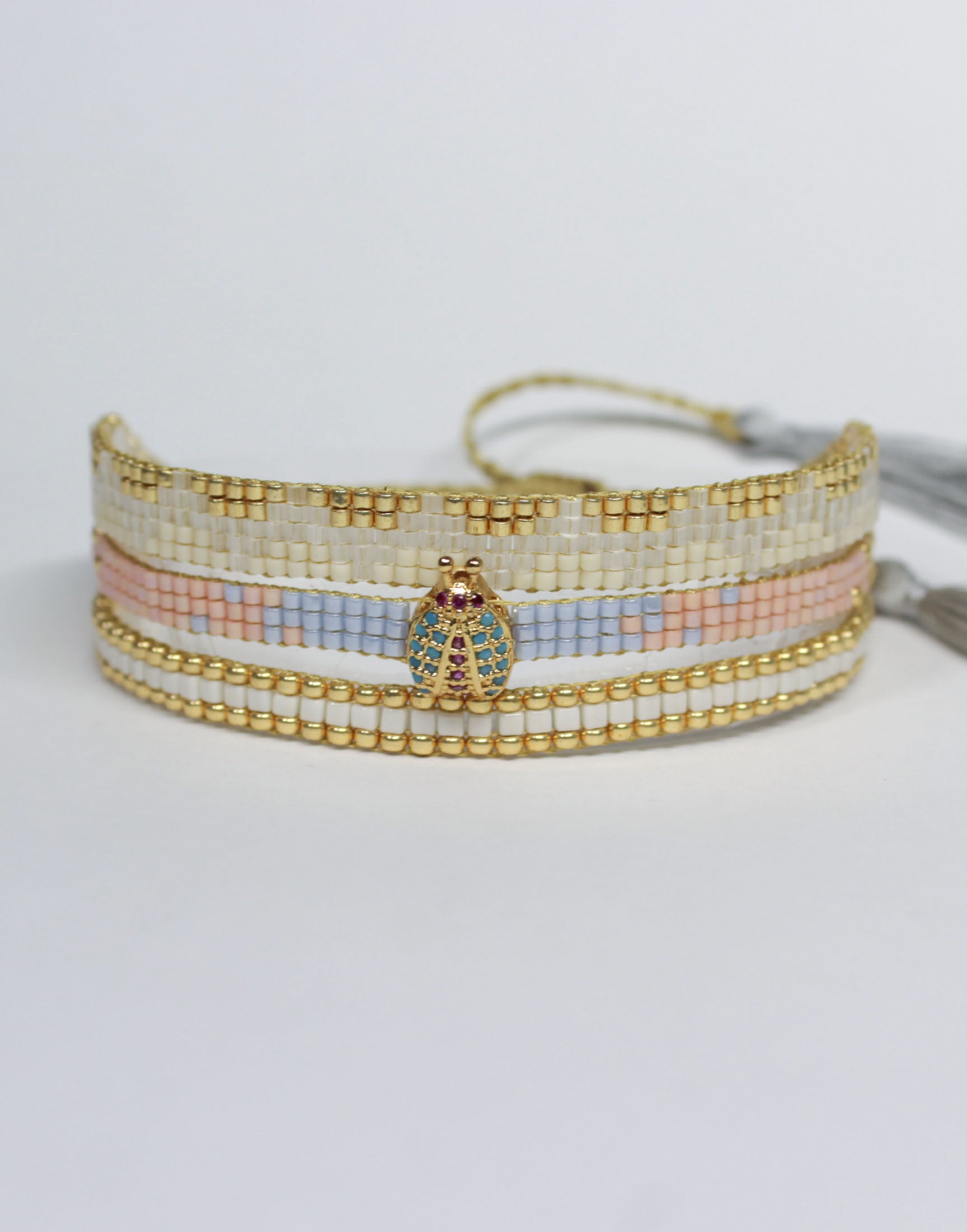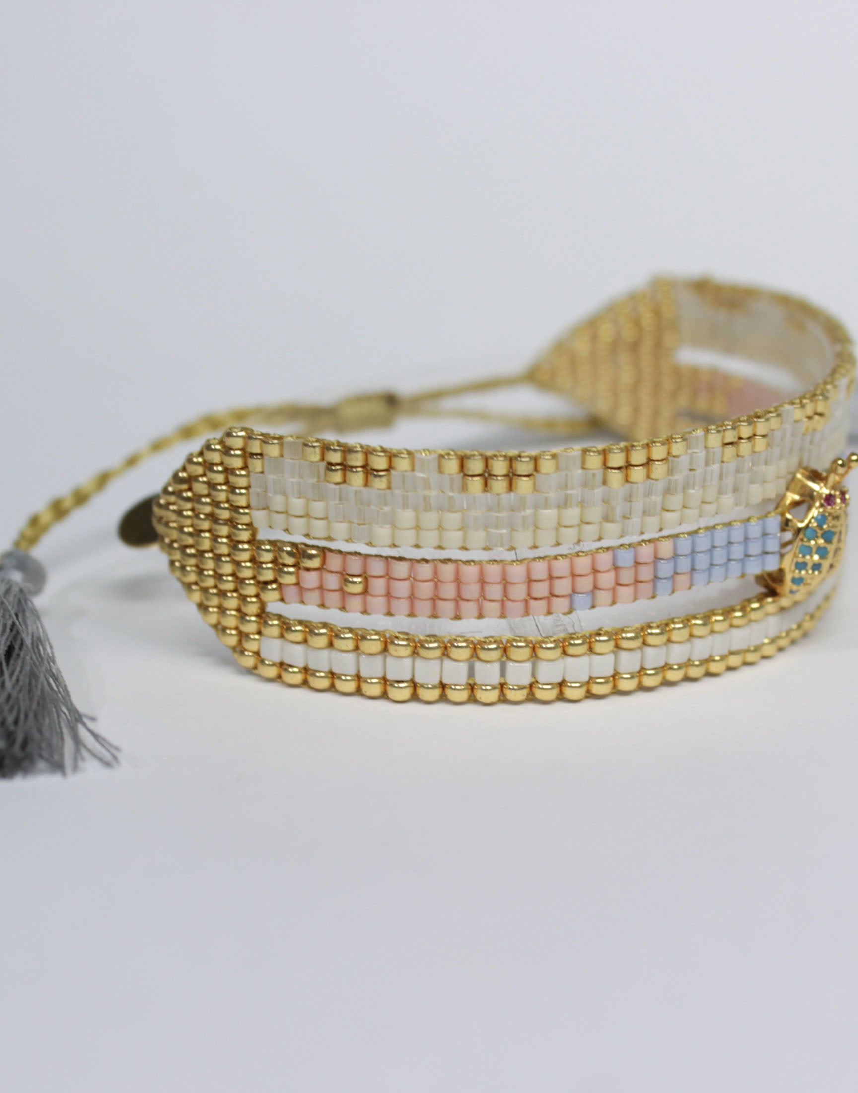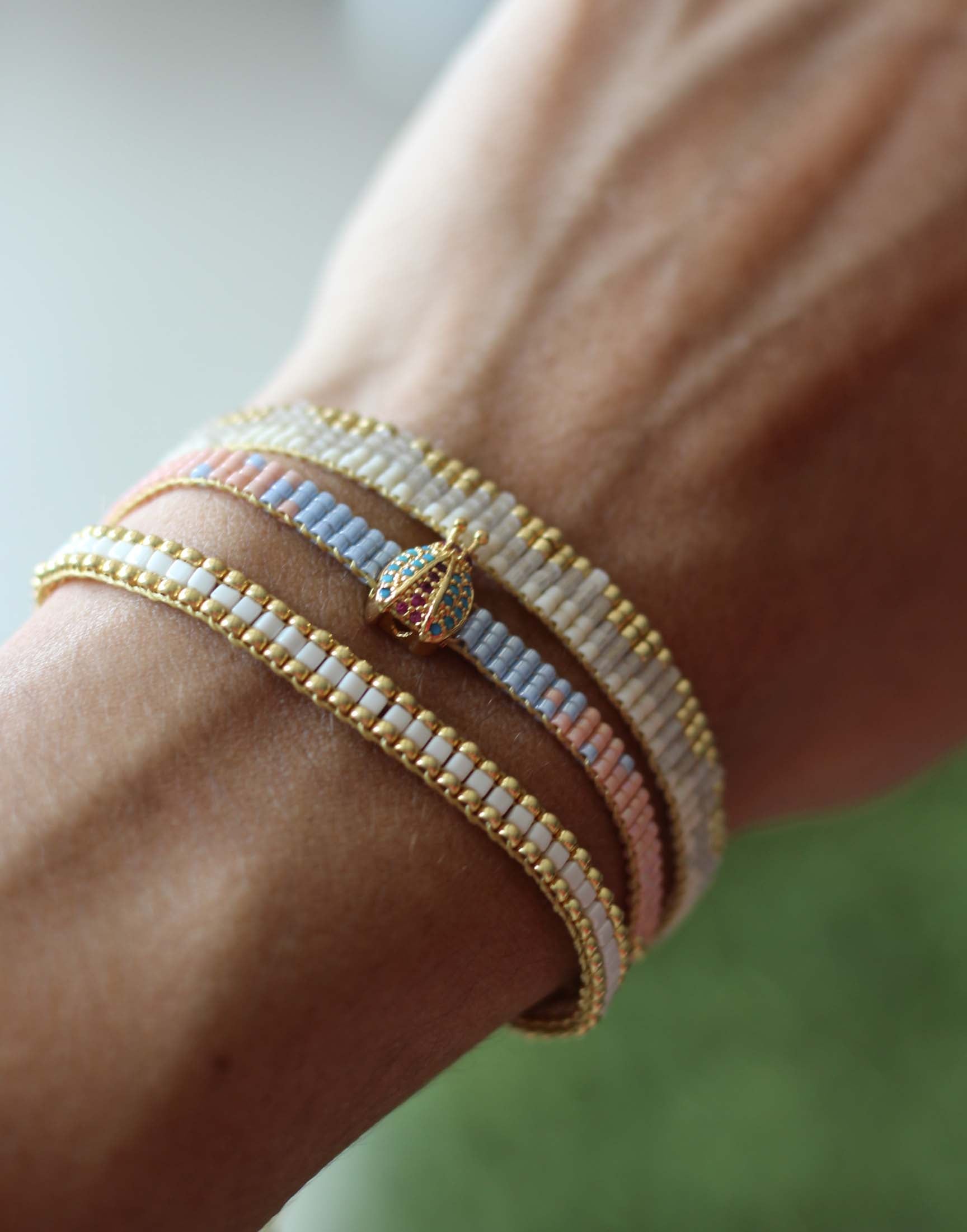 Brazalete hecho para brillar. Son tres pulseras integradas en un solo brazalete ajustable. Cada pieza es única.