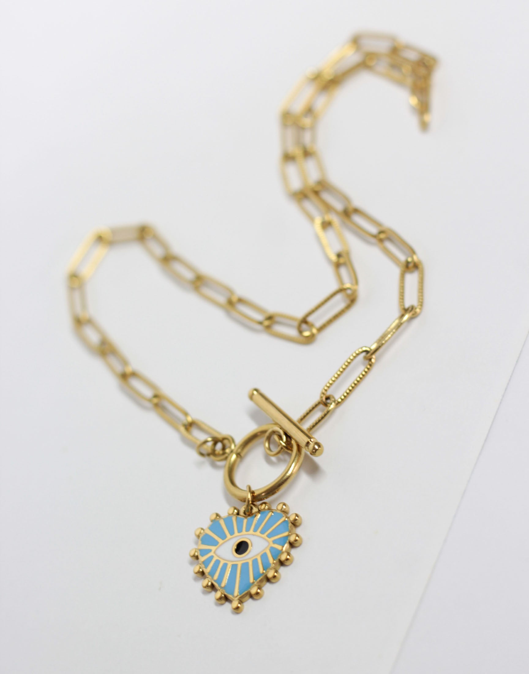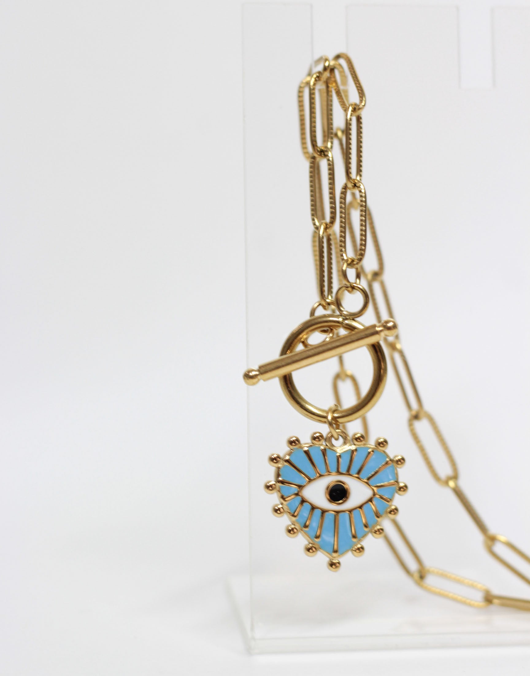 Collar de acero inoxidable, con una combinación de eslabones grandes y colgante corazón.