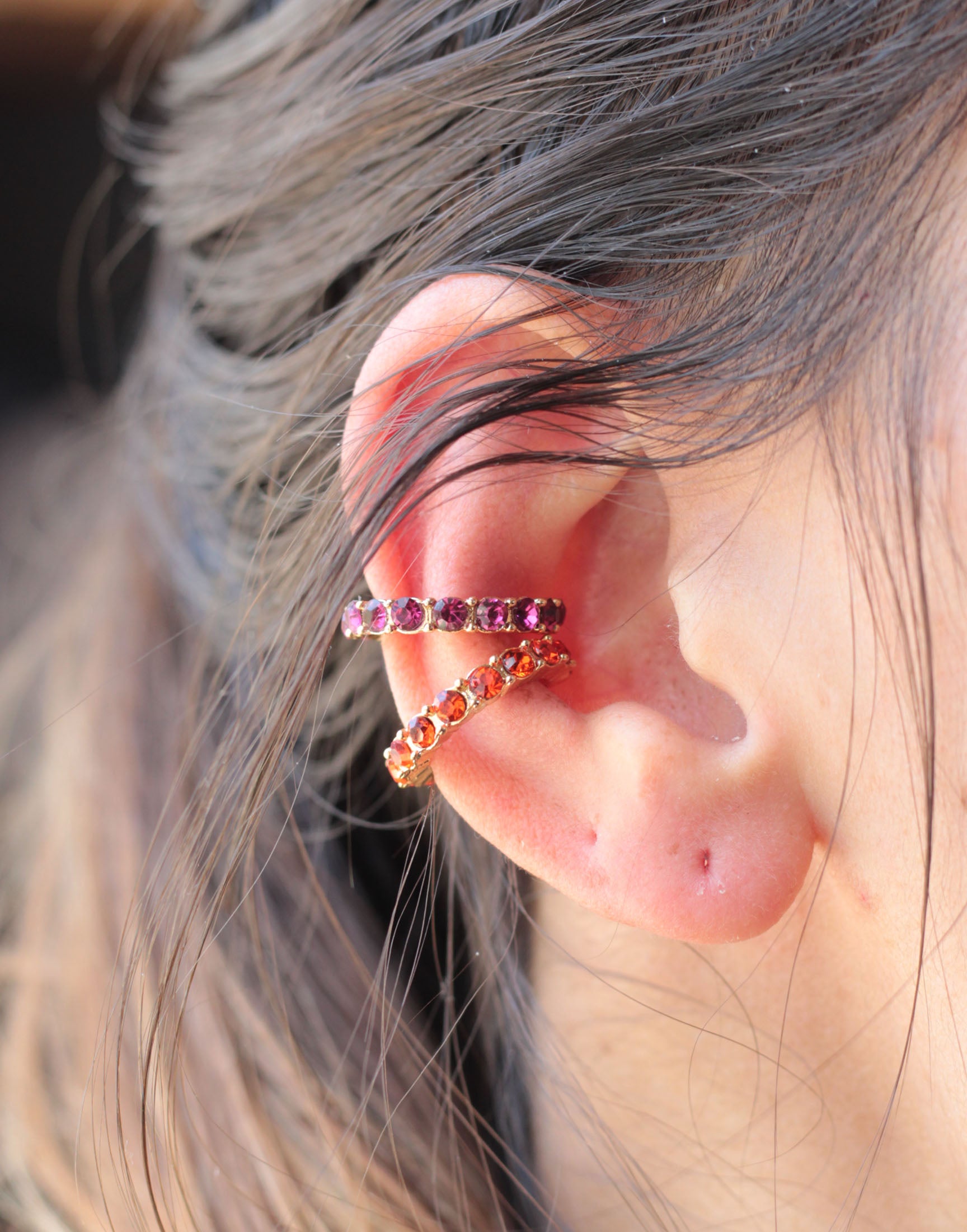 Earcuff de cristales de diferentes colores. Vienen un pares.