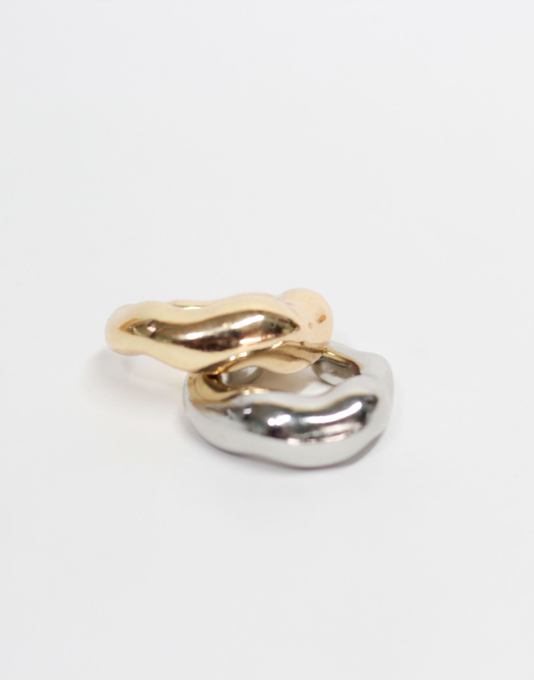 Earcuff en acero inoxidable con forma irregular. Viene en pares dorado y plateado.