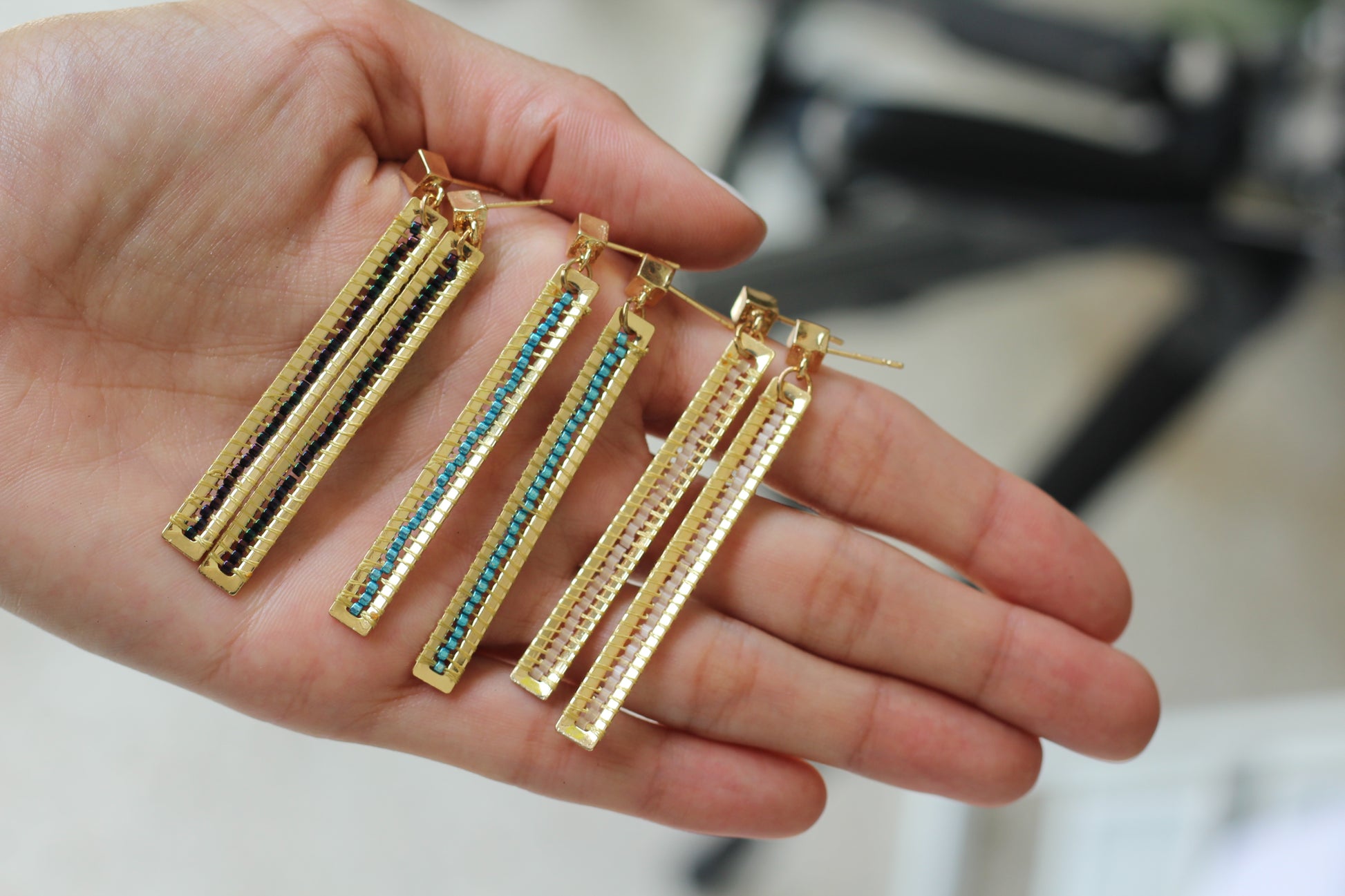 Zarcillos con base metálica, tejidos con miyuki. Piezas exclusivas