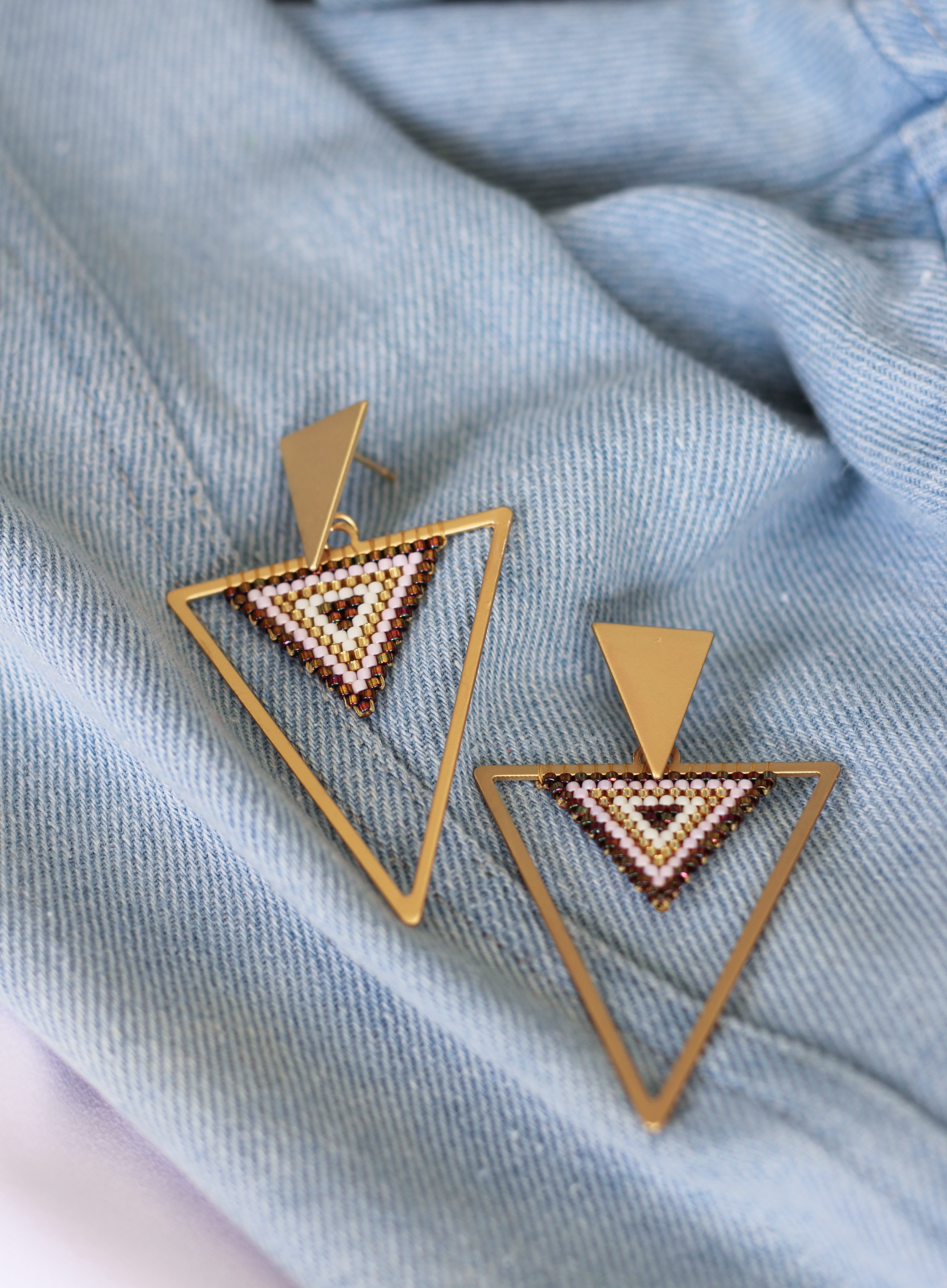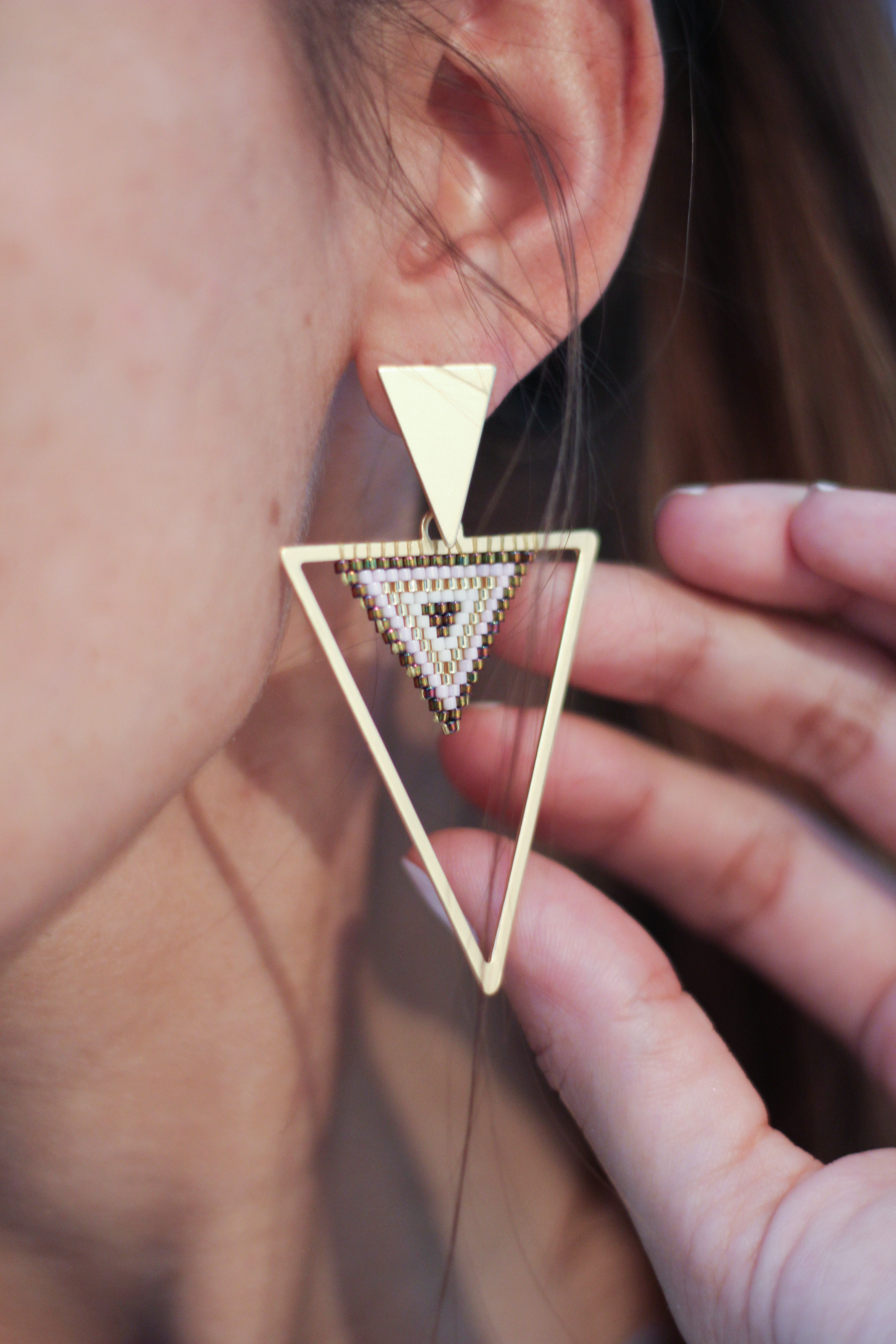 Zarcillos con base metálica tipo topitos, tejidos con miyuki. pieza exclusiva.