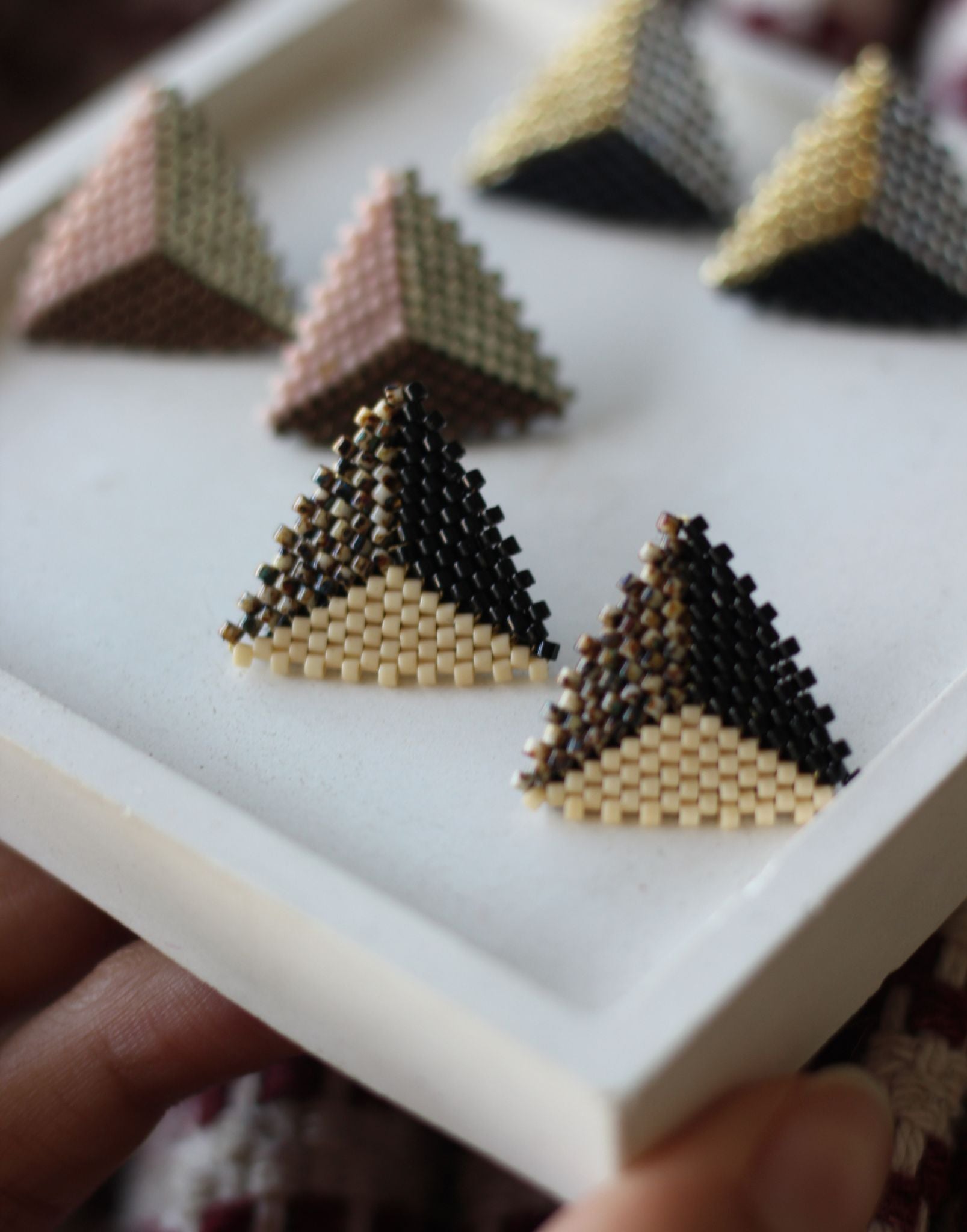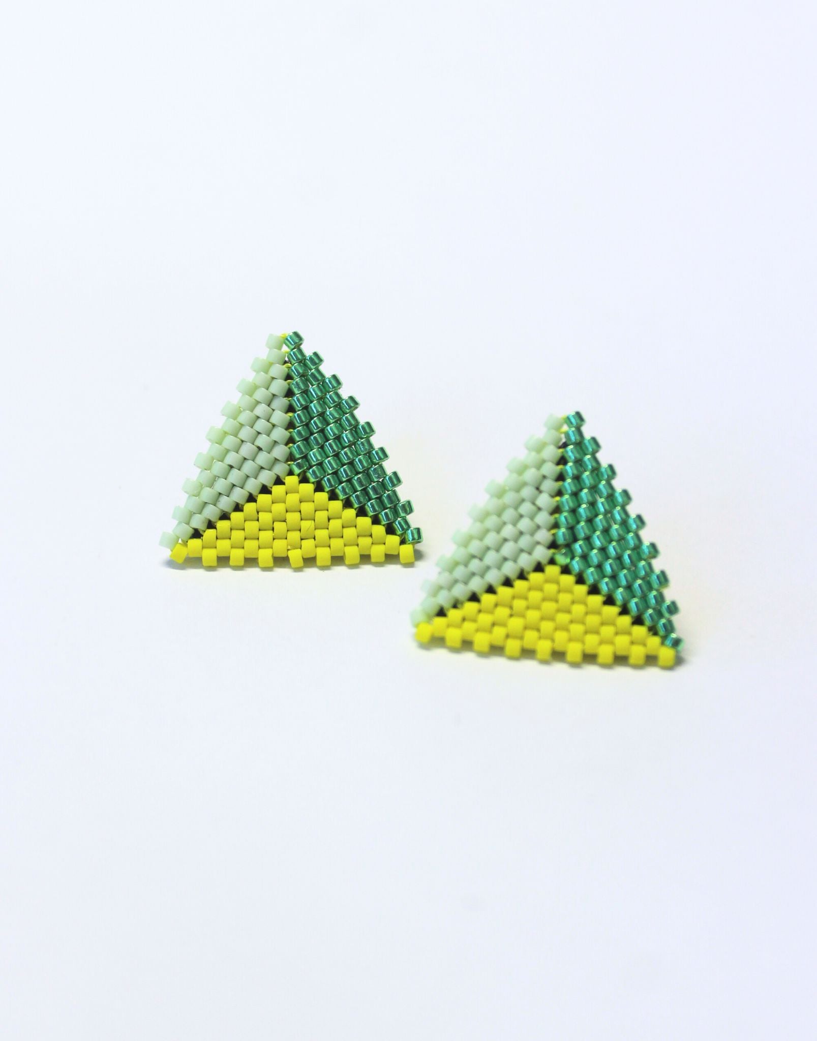 Todas las combinaciones son posibles para este modelo de zarcillos topitos, livianos y versátiles. Cada pieza es única en sus colores.
